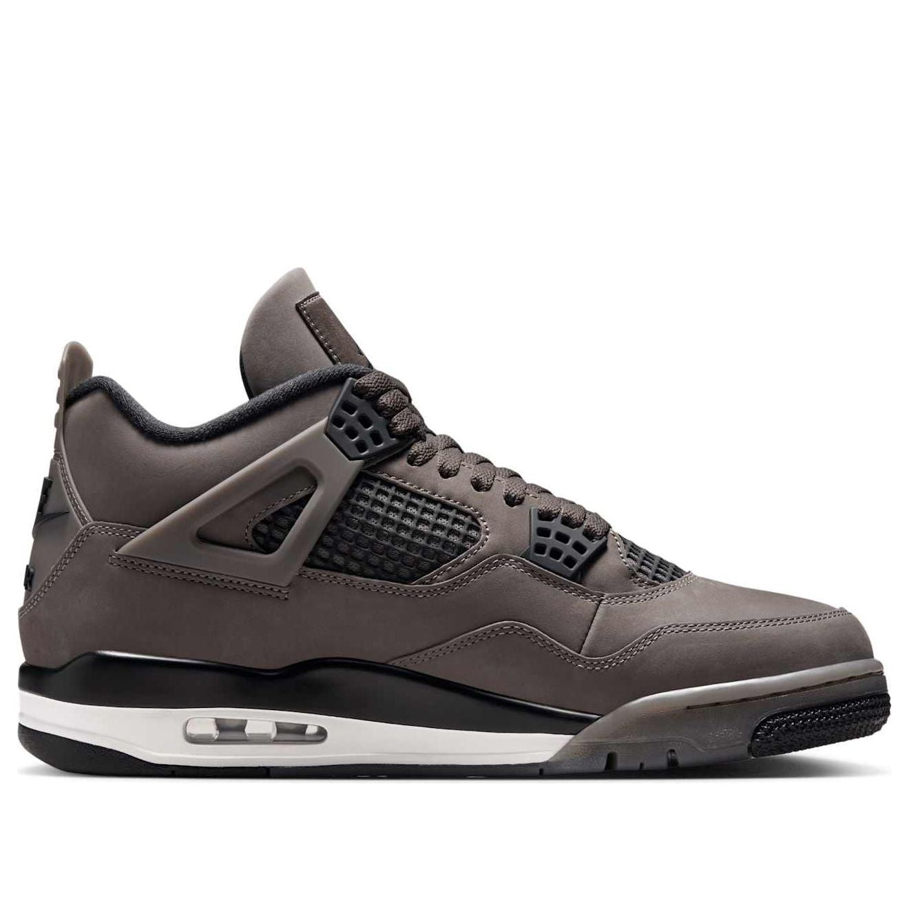 The Air Jordan 4 "Cave Stone" boasts a striking design blending familiar and fresh elements. Premium suede in deep grey and earthy brown tones creates a rugged yet refined look, reminiscent of both Travis Scott collaborations and the earthy aesthetic of Avatar: The Last Airbender. Black mesh and accents provide stylish contrast.