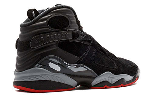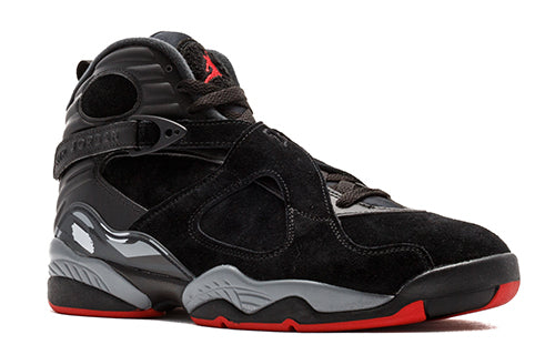 The Nike Air Jordan 8 Retro 'Bred' is the perfect sneaker for both style and comfort. The black leather and nubuck upper is offset by a Wolf Grey midsole, and the Gym Red accents at the tongue, insole, and outsole add a pop of color. Whether you're hitting the court or just running errands, this sneaker is a must-have for any Jordan fan.