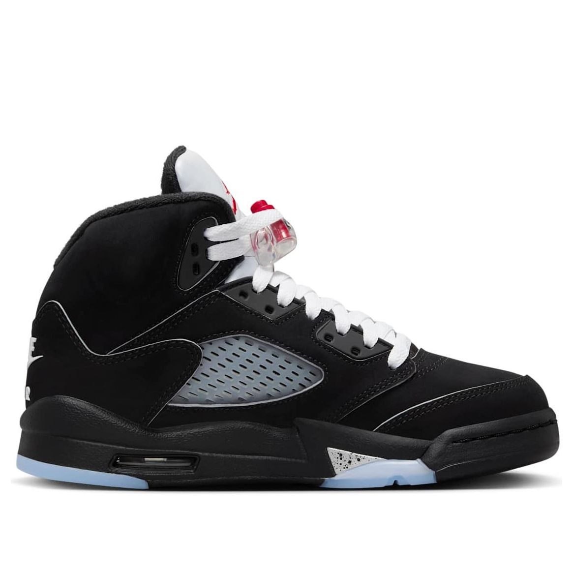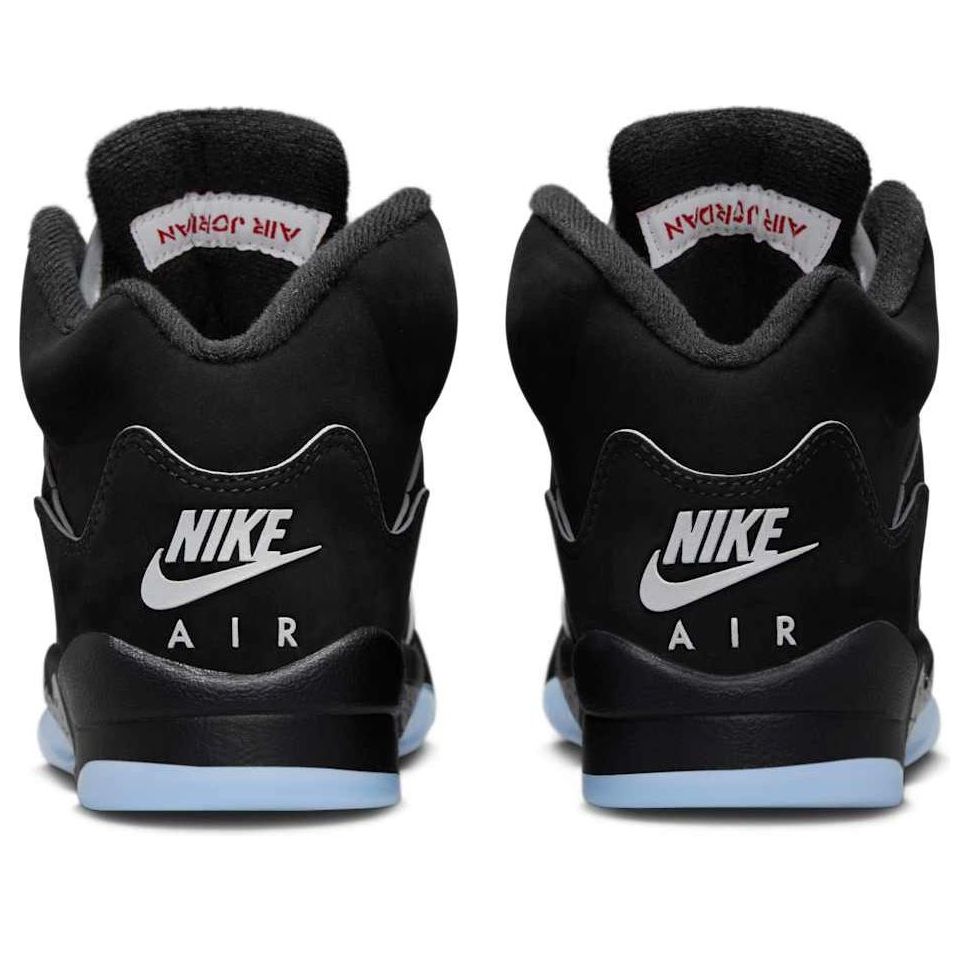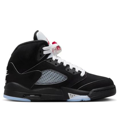 Reimagined for 2025, the Air Jordan 5 "Black Metallic" stays true to its 1990 roots. A sleek black nubuck upper, metallic silver accents, and Fire Red pops deliver a timeless yet updated classic. Modern touches enhance the iconic silhouette, making this a must-have for collectors and enthusiasts alike.
