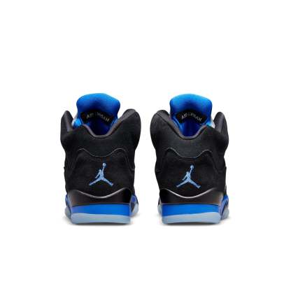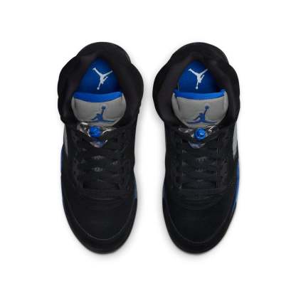 The Air Jordan 5 Retro GS 'Racer Blue' delivers vintage style with a modern edge. The nubuck upper is sleek and durable, with royal blue Jumpman branding and silver reflective tongue for a touch of luxury. The lace locks provide a secure fit, while the quarter panel netting ensures breathability. The blue foam midsole is fitted with a visible Air-sole unit in the heel for cushioning, and the translucent rubber outsole provides grip and support.
