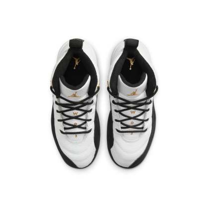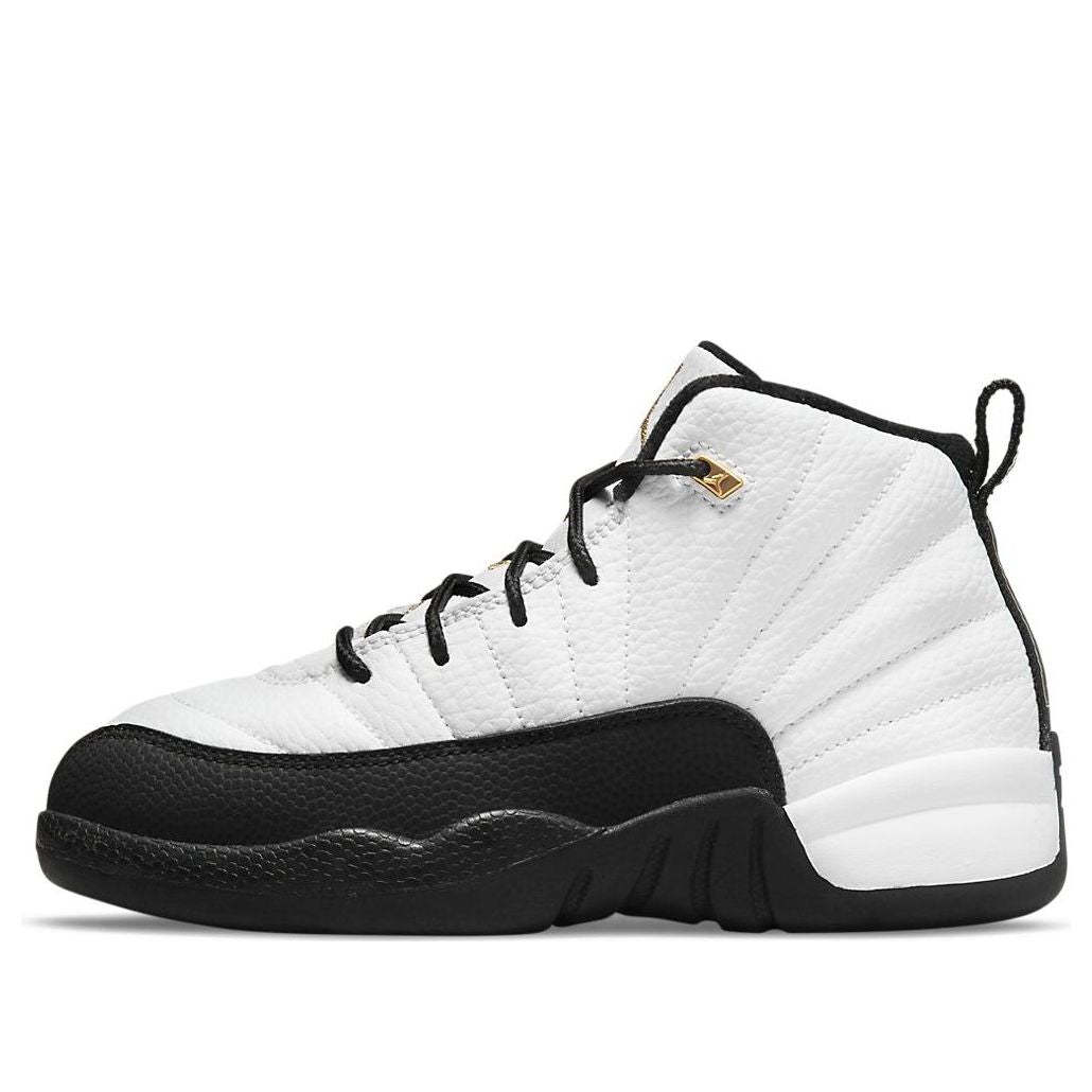 The Air Jordan 12 Retro PS "Royalty" is a great choice for young kids. Resurfacing the two-tone color blocking of the original "Taxi" colorway, this sneaker features a white tumbled leather upper with radiating stitched lines. Black lizard-textured overlays and metallic gold eyelets provide support and style, while lightweight cushioning comes courtesy of a Phylon midsole. A herringbone-traction rubber outsole completes the look and provides superior grip.
