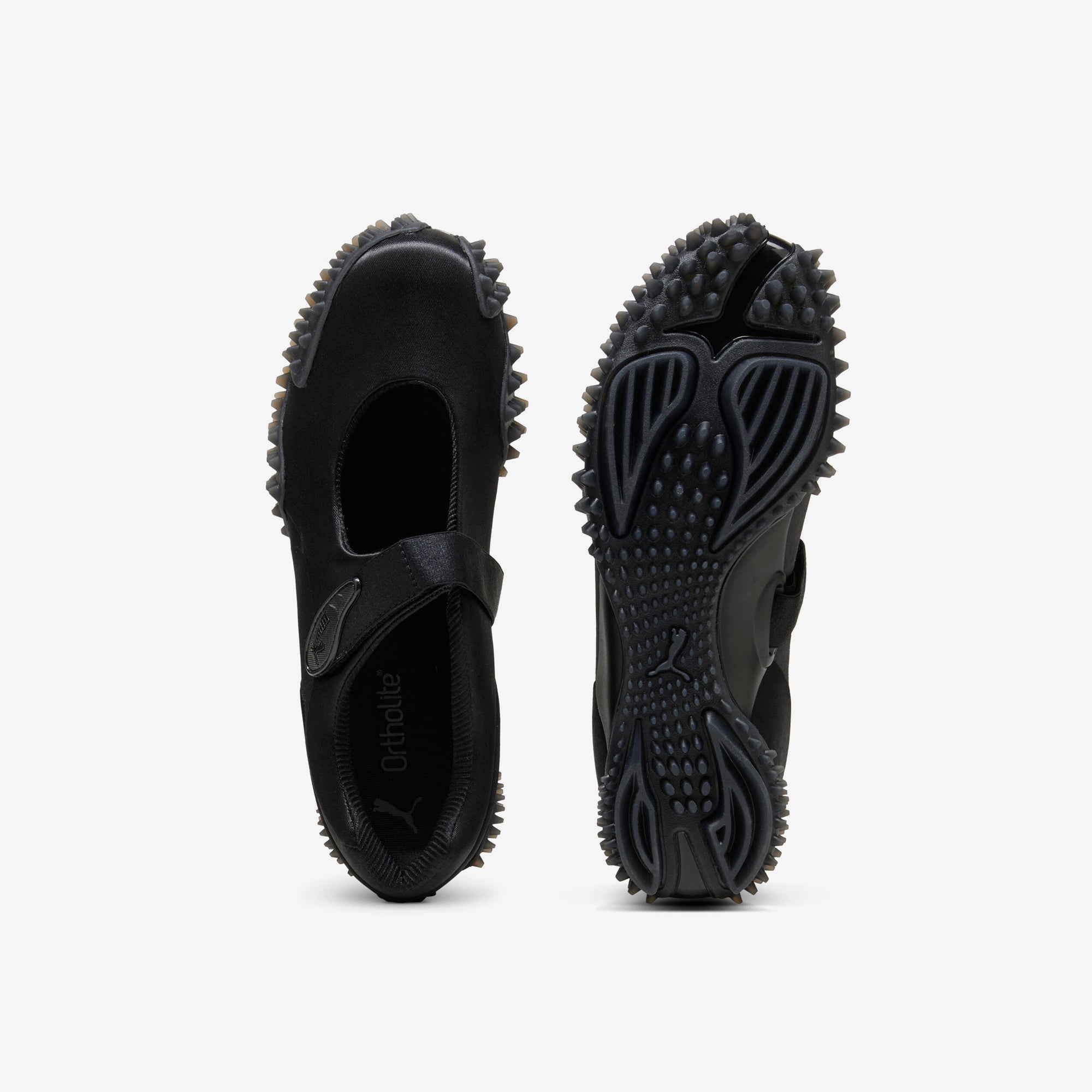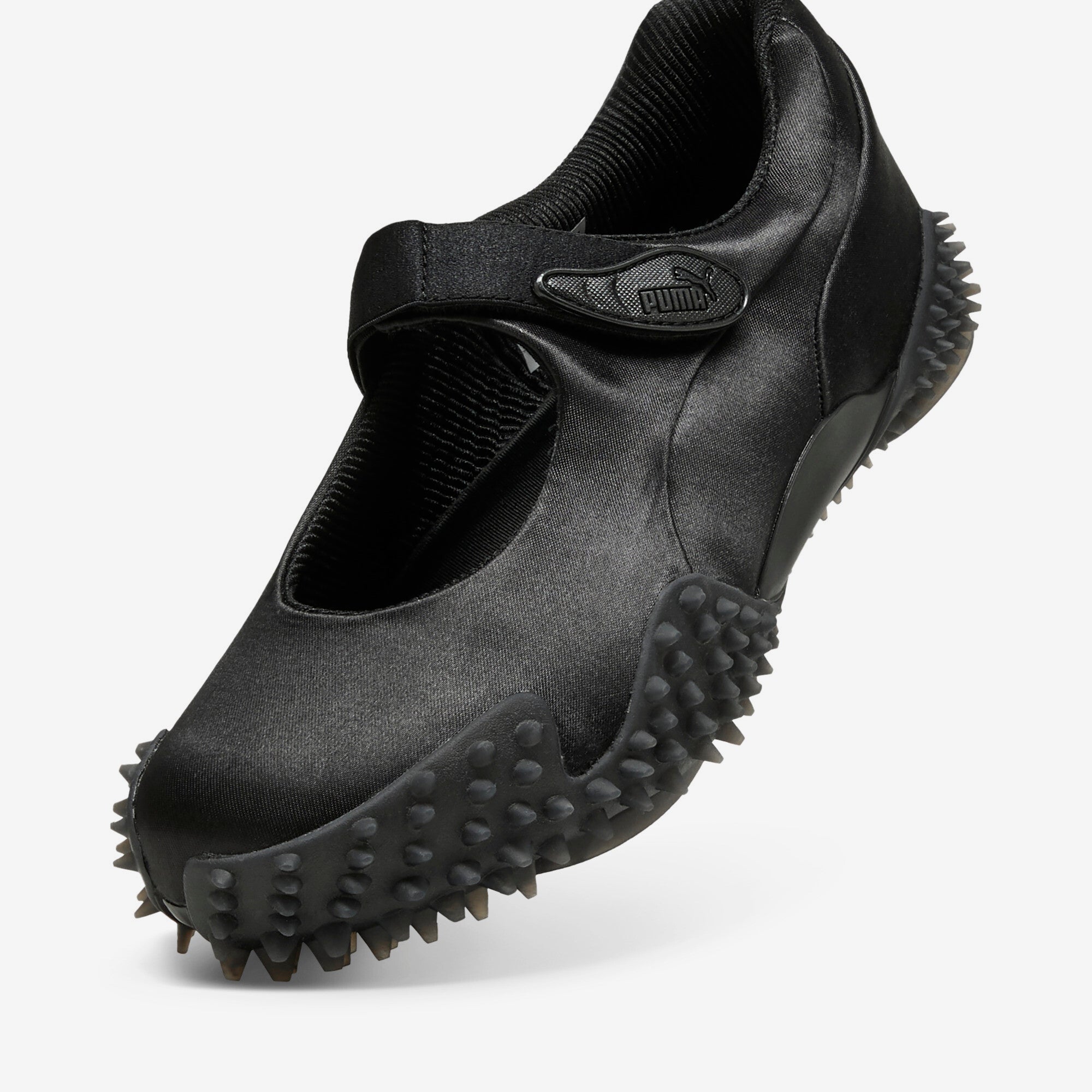 After first hitting the scene in 1999, the PUMA Mostro continues to evolve with this brand-new Mostro Fey edition, which combines its signature, bold design with a delicate Mary Jane silhouette for a look that's entirely fresh and undeniably PUMA. Named after the Italian word for "monster," the PUMA Mostro Fey PRM fuses a shiny satin upper with an elasticated hook-and-loop closure across the forefoot atop an OrthoLite® moulded sockliner and distinct spiked rubber sole for optimal comfort and traction, while signature PUMA logos adorn the strap and heel counter to finish the look.