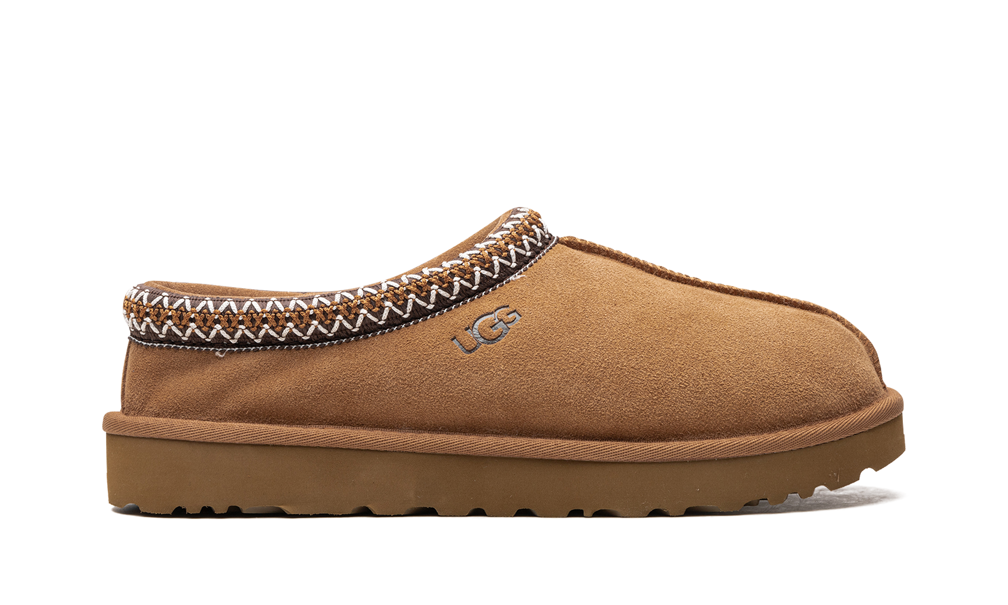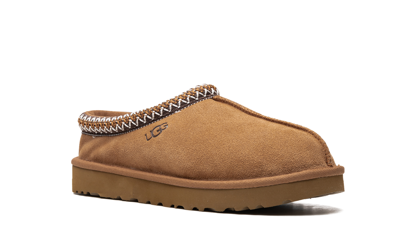 Slip into iconic comfort with the incredible UGG Tasman WMNS "Chestnut" slipper. Designed for women, this bestseller provides supreme coziness with its plush sheepskin and upcycled wool inner lining. The rich chestnut-colored suede upper is highlighted by the classic Tasman embroidered braid around the collar. Featuring a durable EVA foam sole for flexible traction, this shoe is perfect for effortless style both inside and outside the home. You'll never want to take them off!