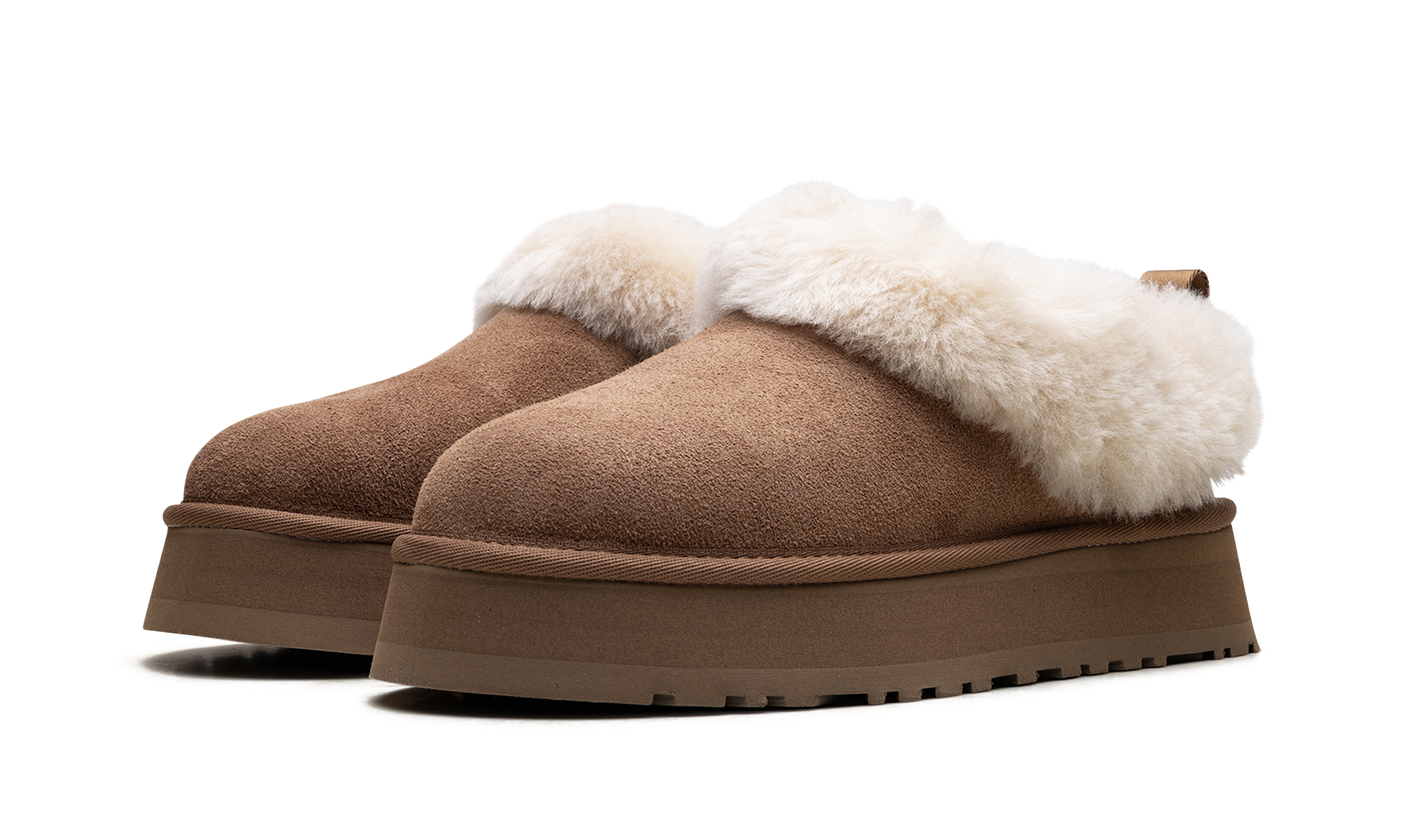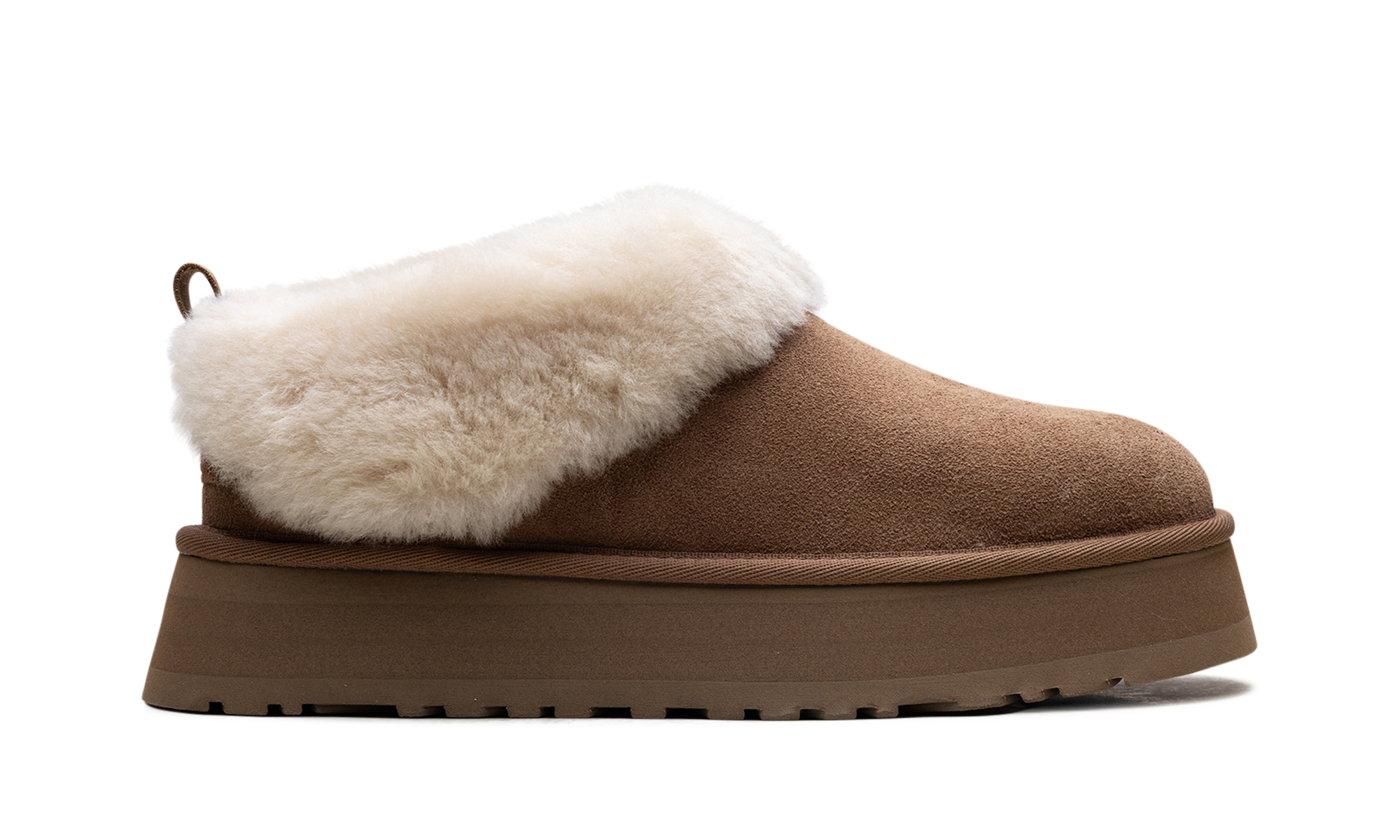 Love the Tazz but want even more UGG coziness? The Tazzelle Slipper WMNS 'Chestnut' is the one for you. This ultra-plush slipper features genuine chestnut suede with a cozy fixed sheepskin collar. Built on a lightweight 1.75-inch Sugarcane EVA platform, it delivers comfortable support and a modern lift. Sheepskin lines the interior, making this luxurious slip-on perfect for both indoor lounging and stylish outdoor adventures.