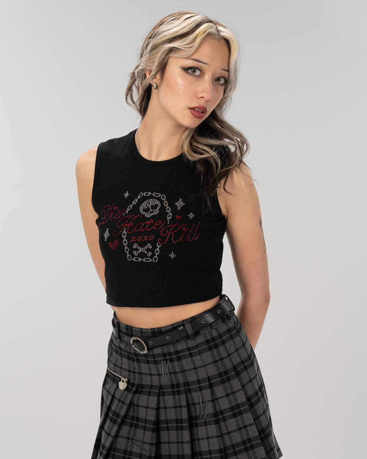 - Diamante embellished cropped tank